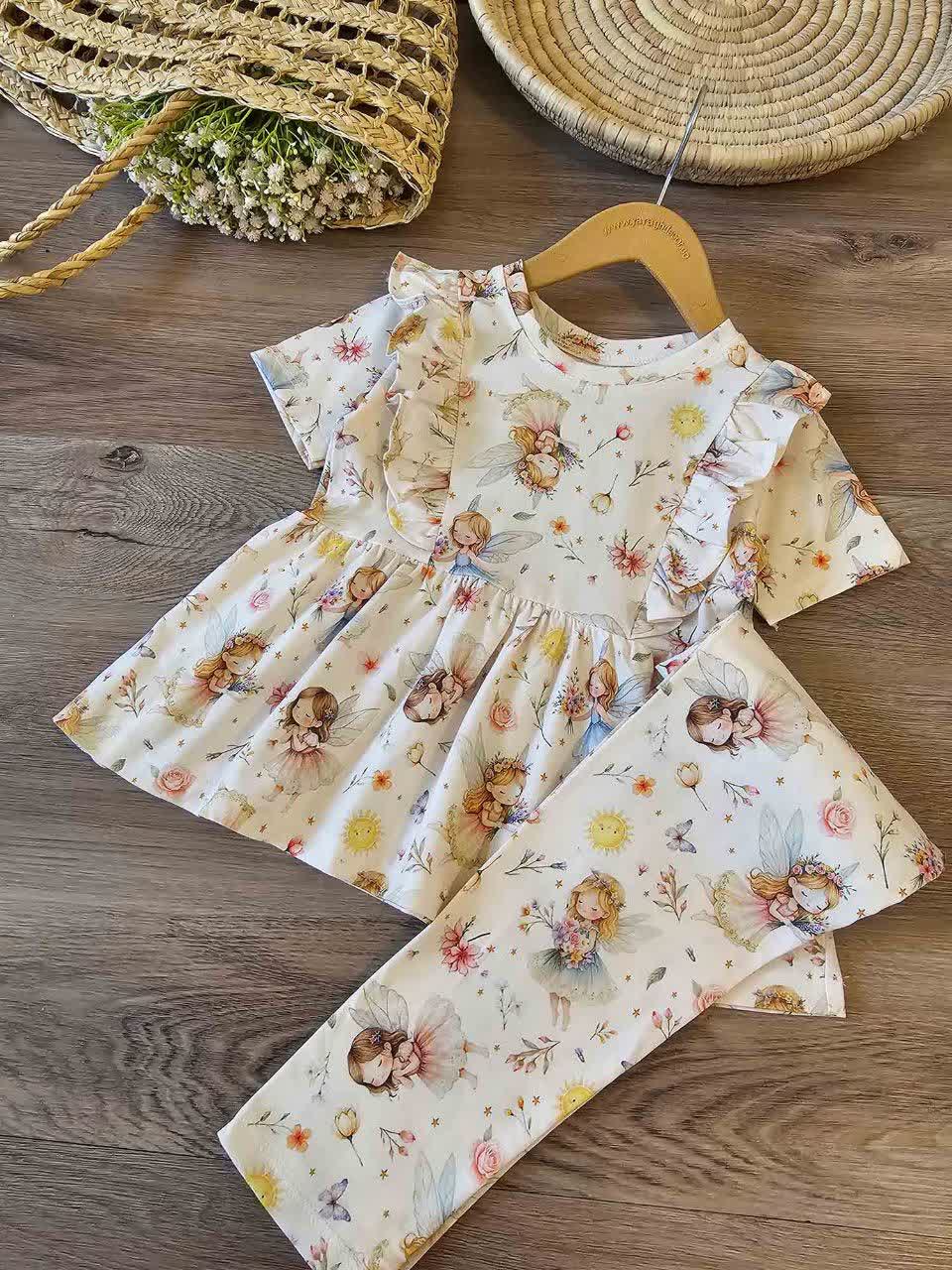 ست راحتی تیشرت شلوار نخ پنبه دخترانه طرح خرگوش و فرشته