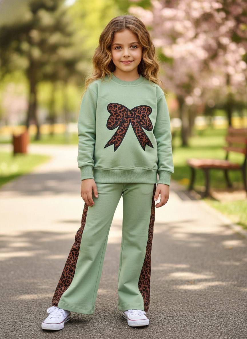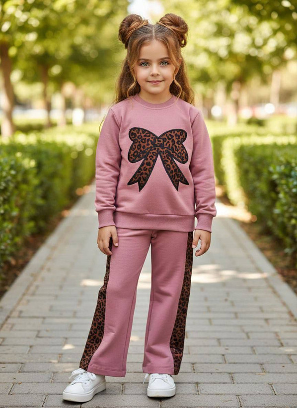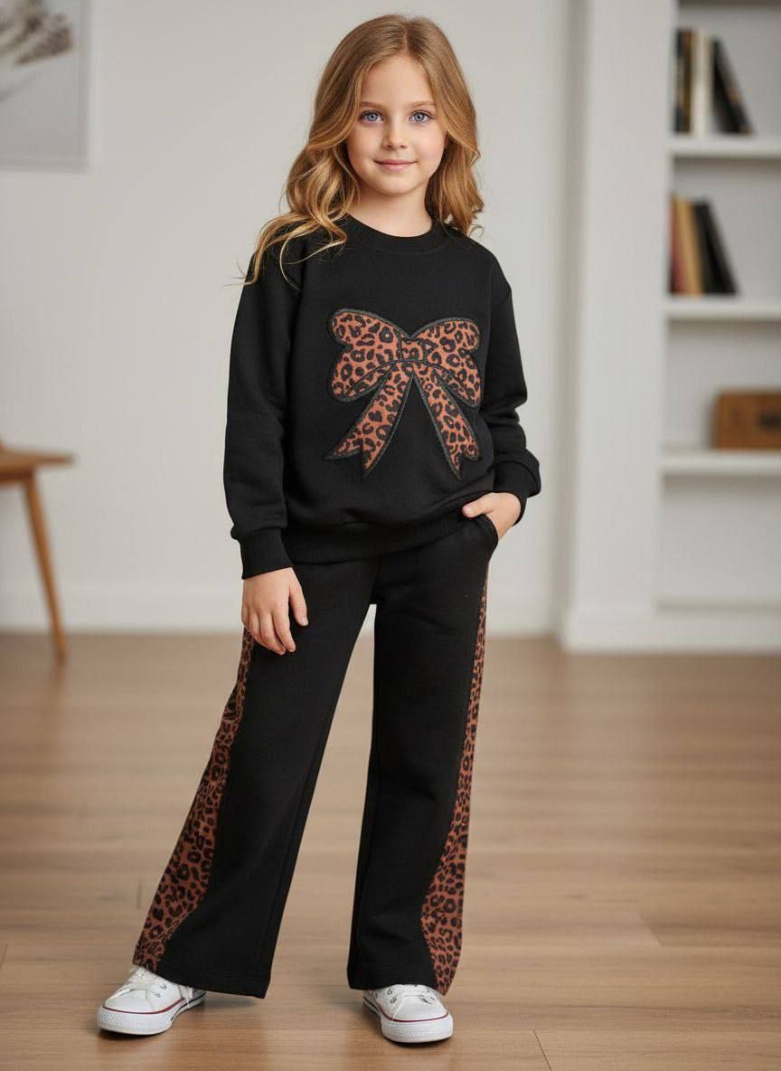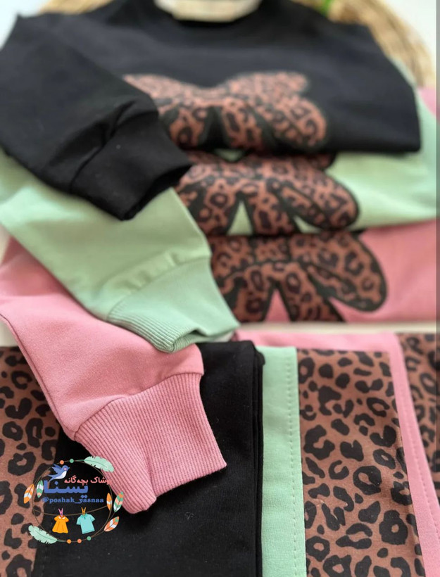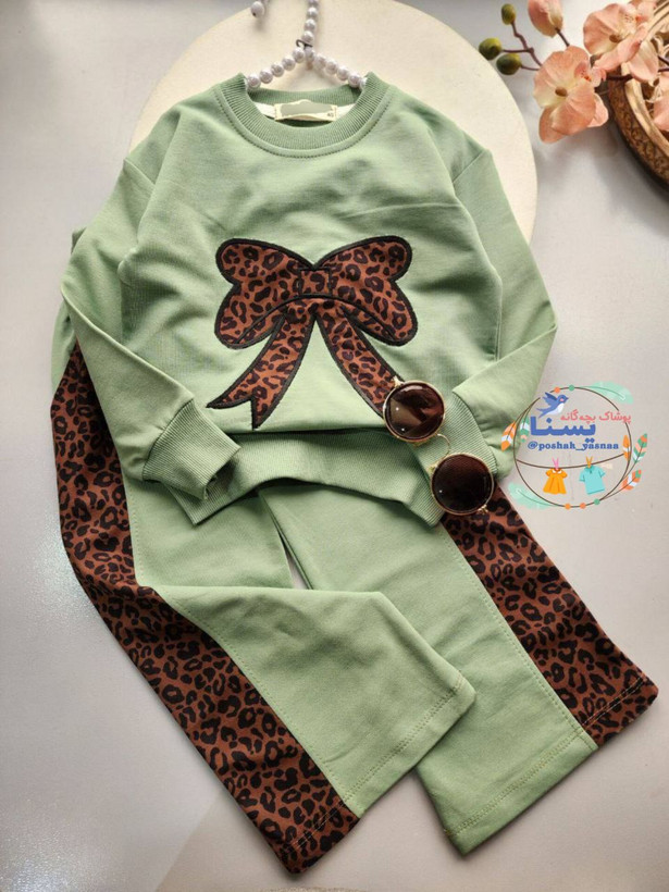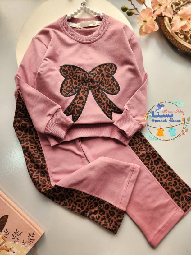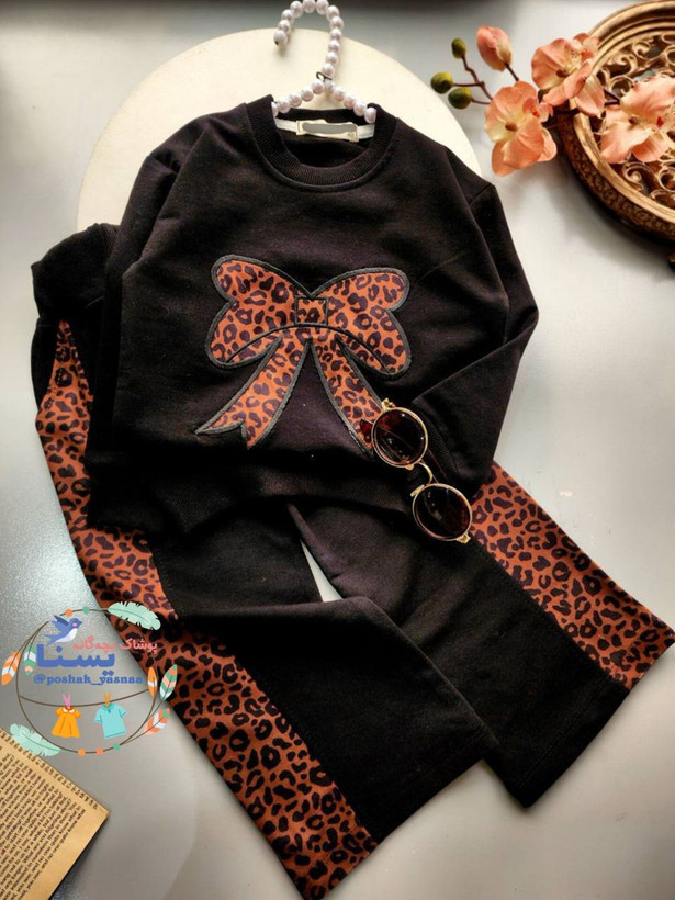 ست خونگی بلوز شلوار دخترانه مدل پاپیون پلنگی