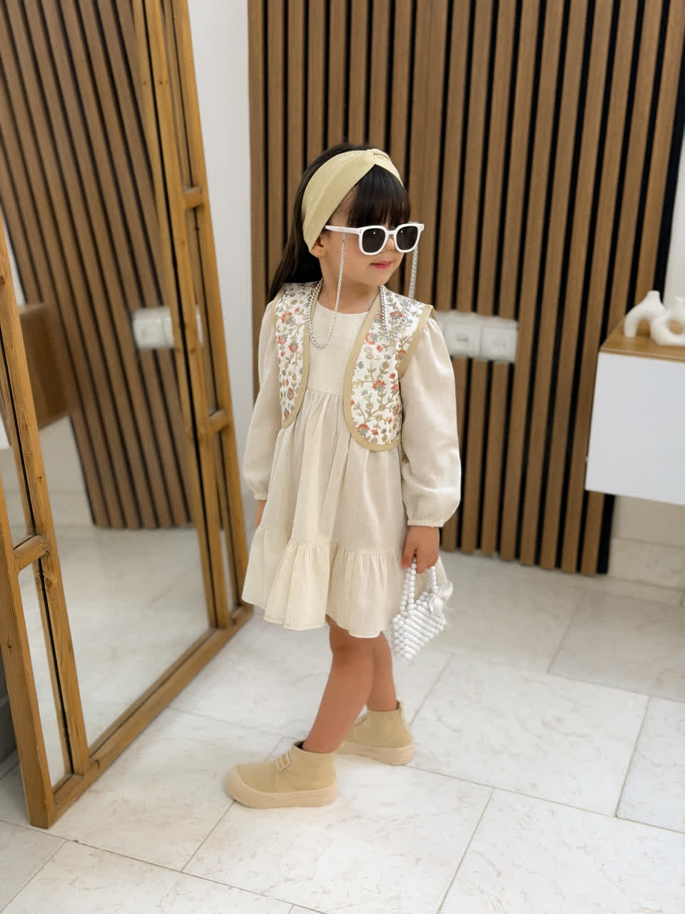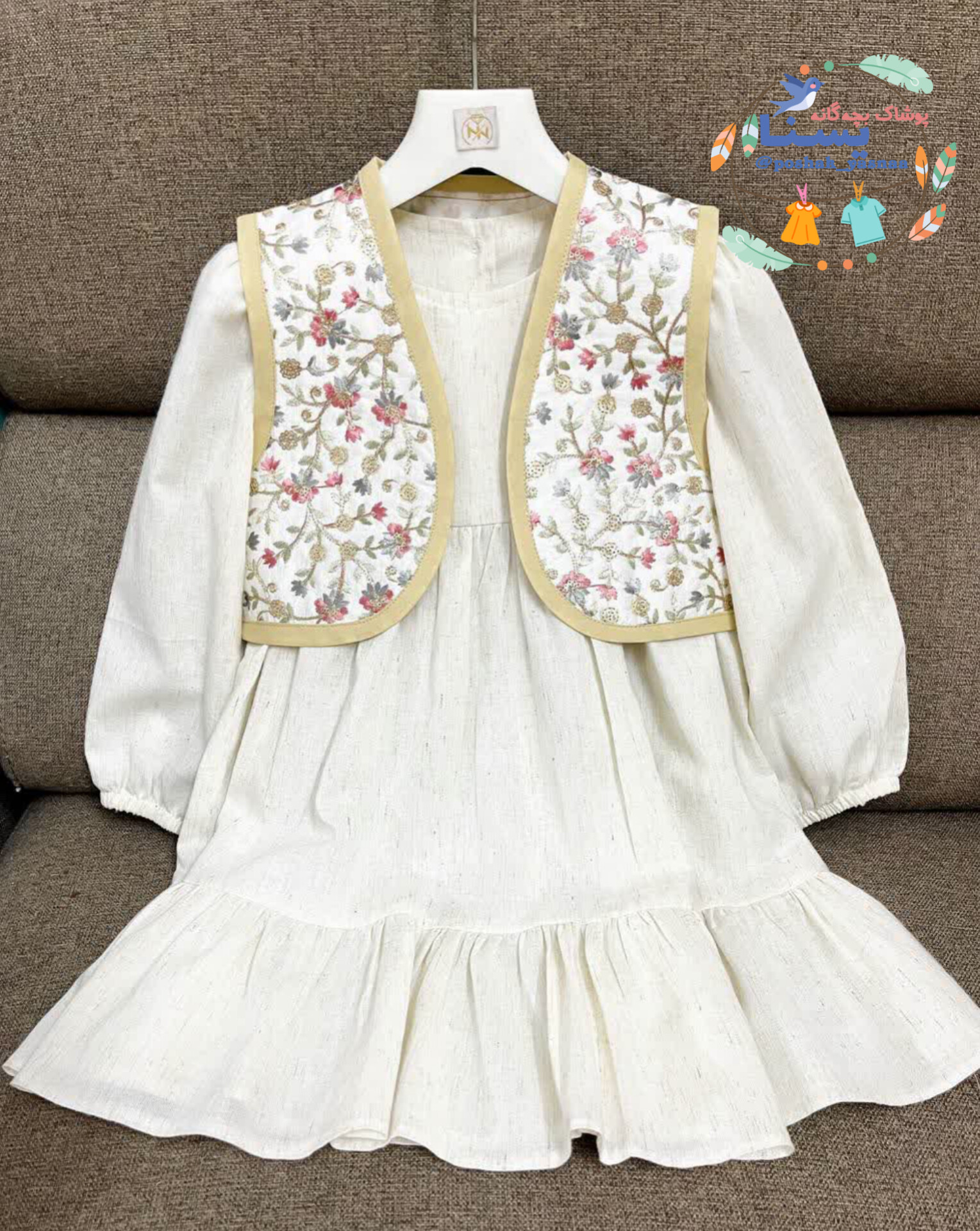 پیراهن با وِست سوزندوزی دخترانه مناسب 2 تا 8 سال